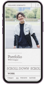 採用担当の方々は時間がないという点を念頭にworkの作品をまず端的に見せ気になる作品を瞬時に選択出来るよう心掛けました。 制作物を見て興味を持っていただけたらABOUTページで私の人となりを端的に知っていただけるよう使いやすくわかりやすく全体的に端的な構成を心掛けました。